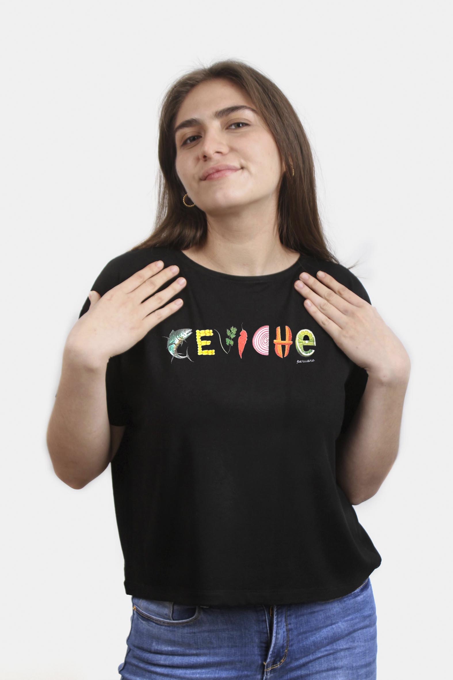 Polo modelo CROP manga corta y cuello redondo hecho 100% en Perú.