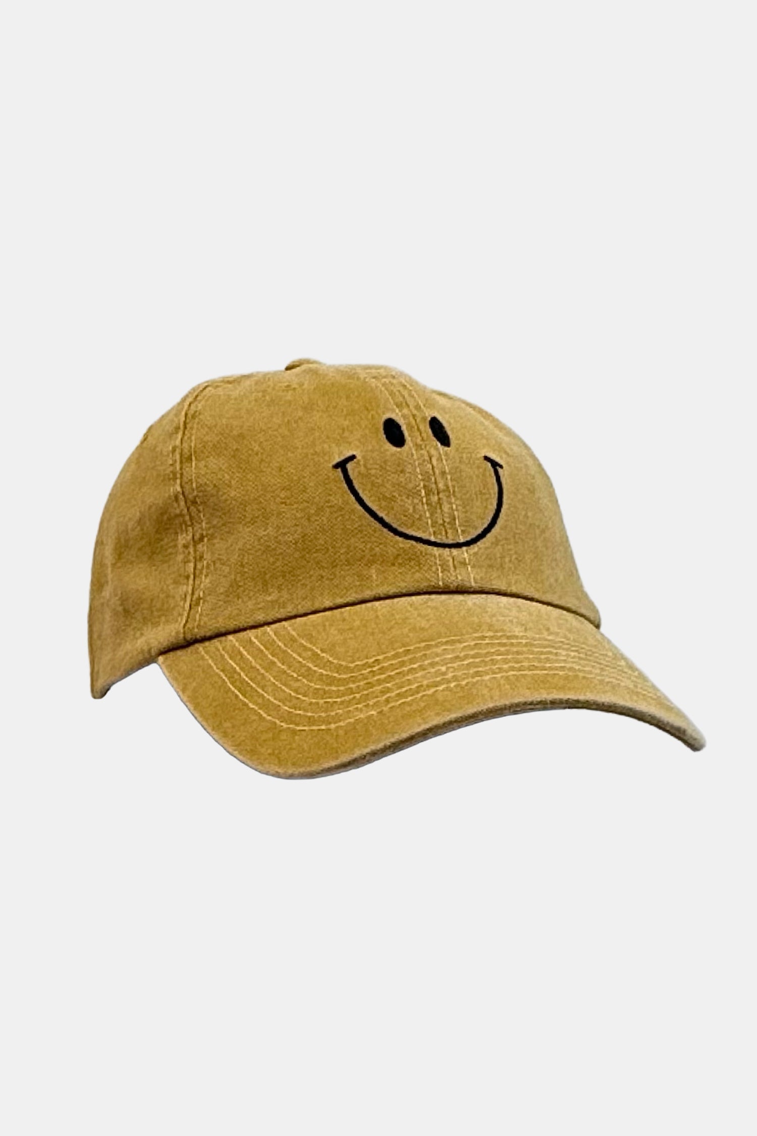 Gorro modelo béisbol en drill desgastado con bordado delantero "Carita Feliz".