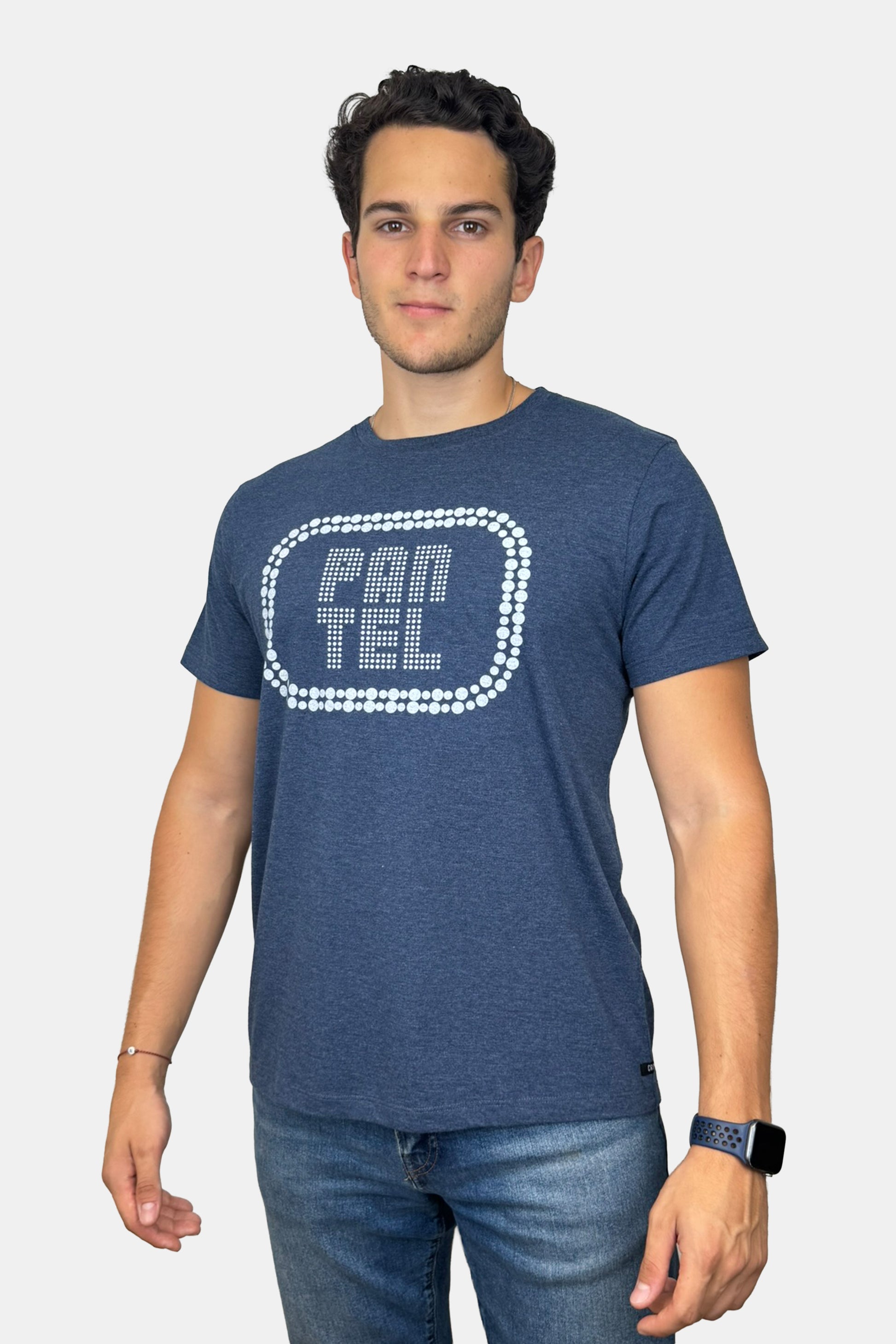 Polo básico en tela jersey 30/1, color AZUL de cuello redondo y manga corta.