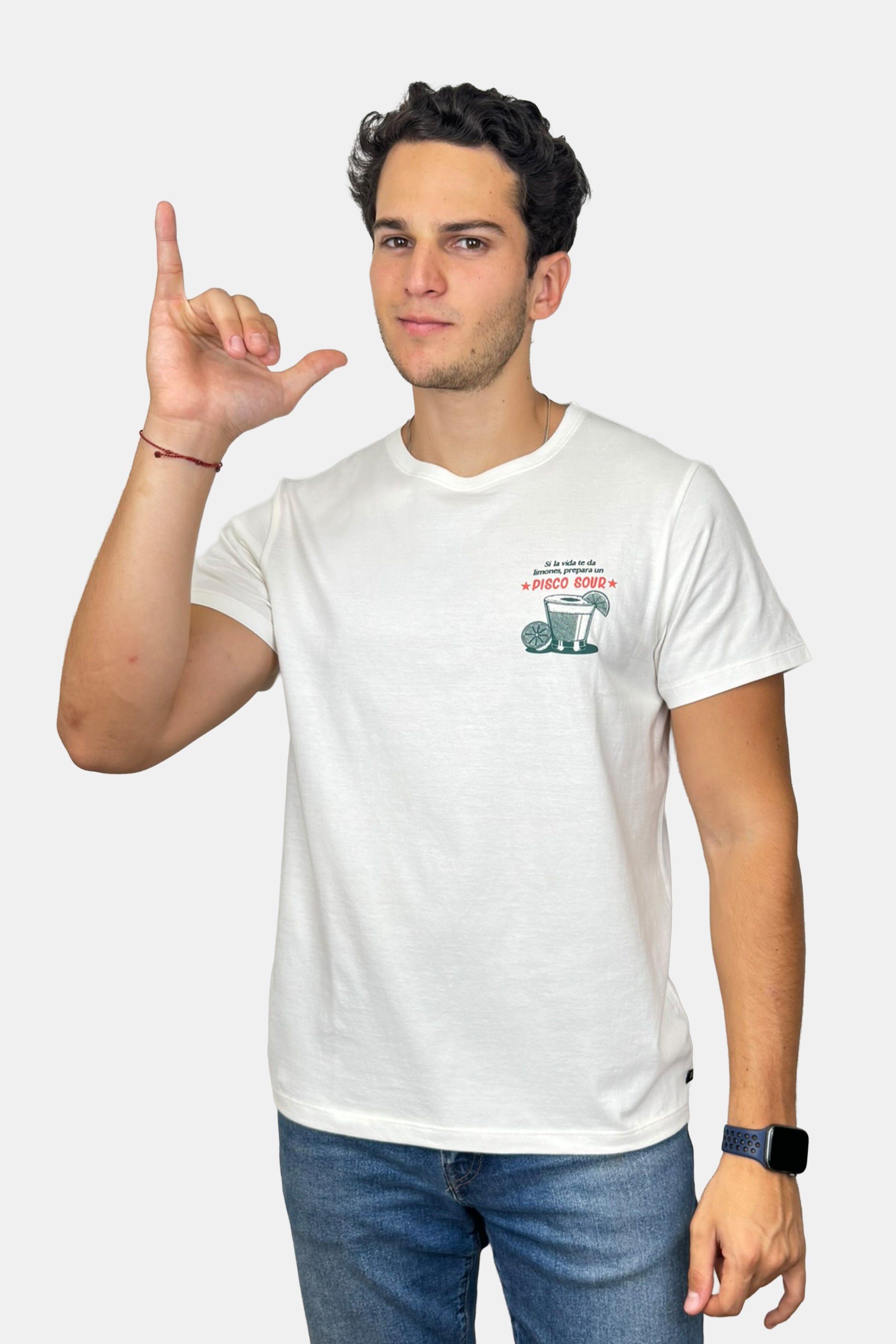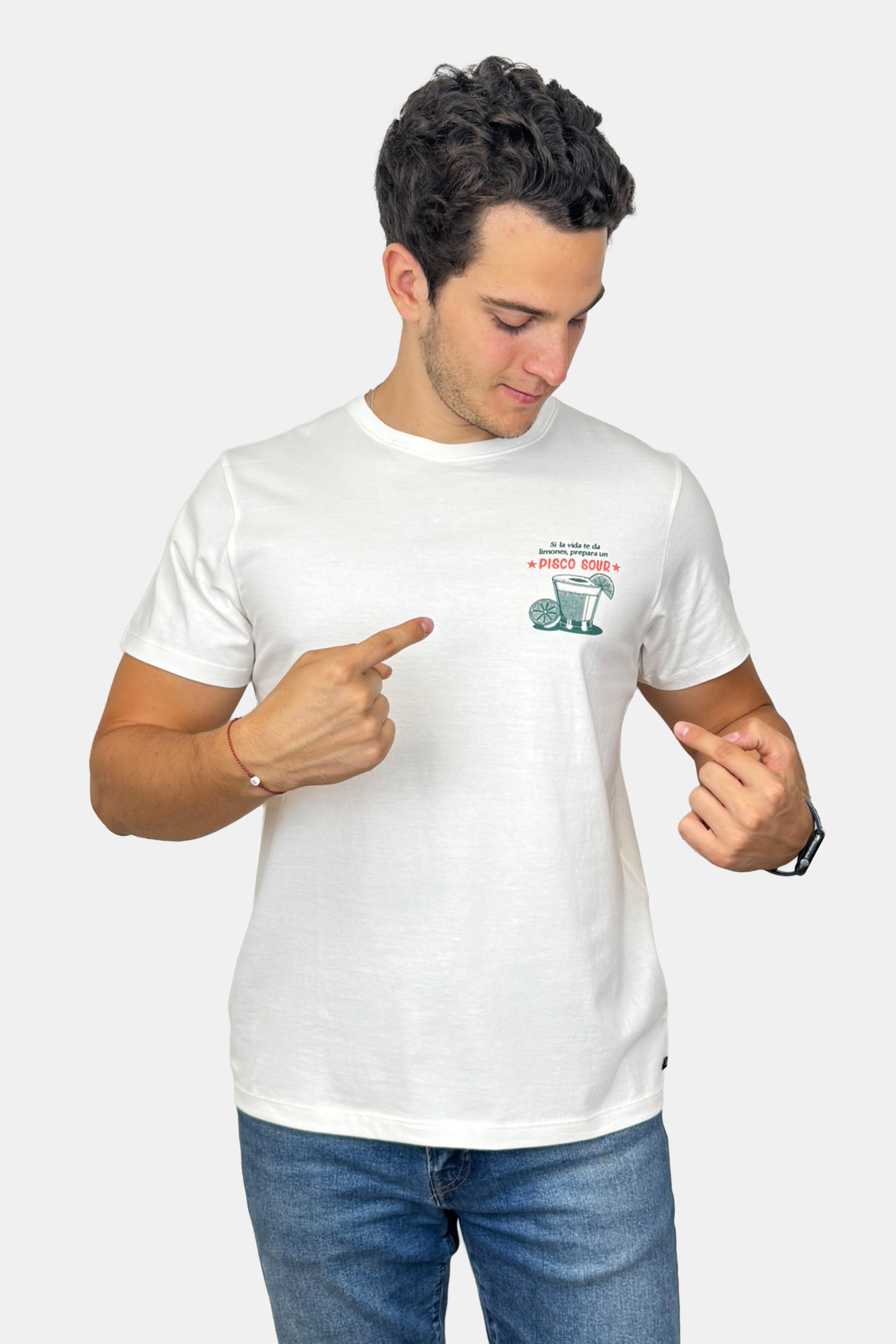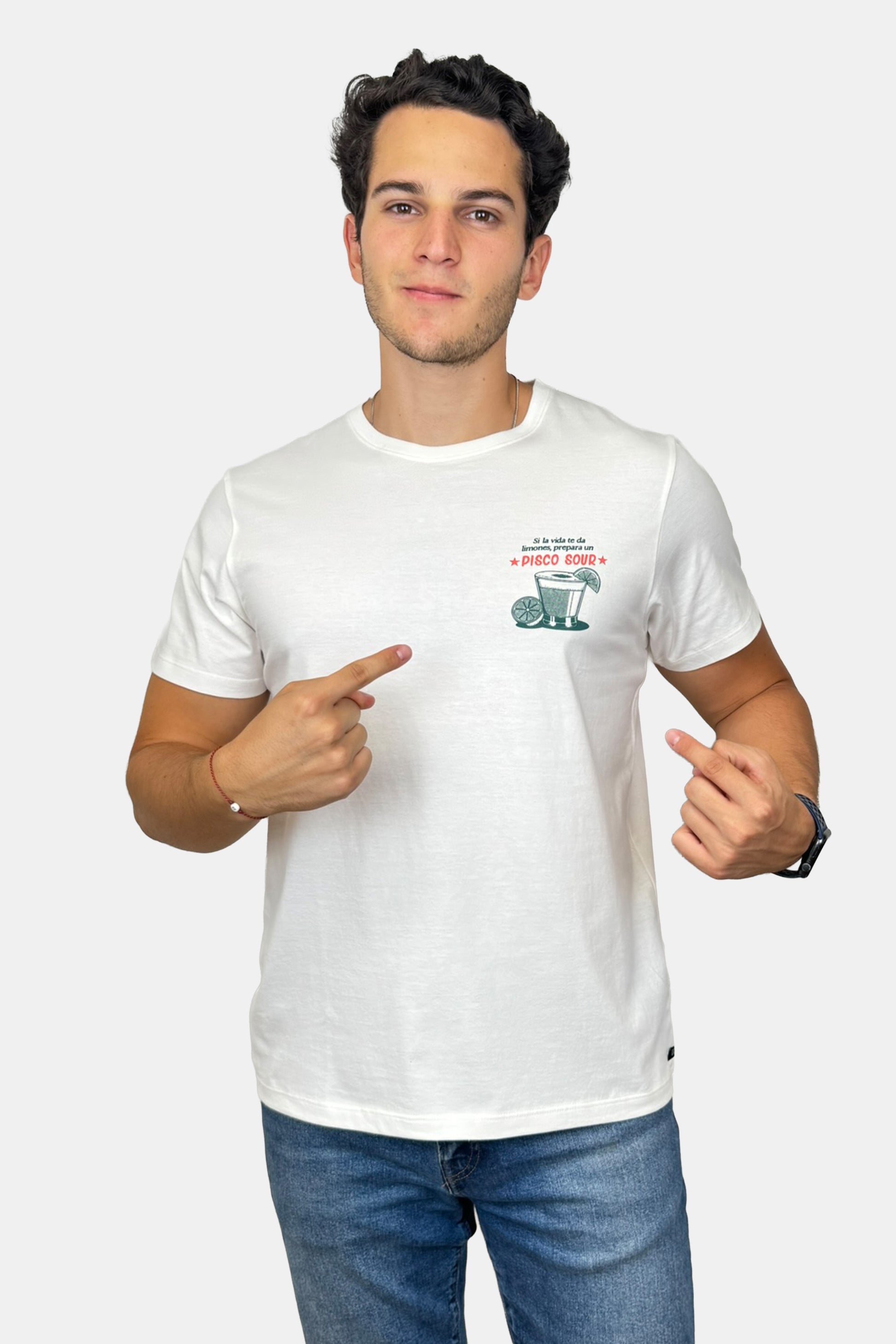 Inspirado en el cóctel nacional por excelencia, este polo presenta una ilustración editorial del clásico pisco sour, acompañada del texto “El secreto está en los limones”. El diseñador Masashi Uehara K aporta su estilo limpio y lleno de personalidad para rendir homenaje a este ícono de la cultura peruana.